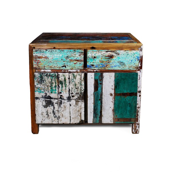 Ecologica Kitchen Cabinet / Kitchen Island / Microwave Station This cabinet from Ecologica Furniture is upcycled from tropical wood, transforming the ambiance in your home into a warm, jubilant environment. This hand-carved hutch is finished with two doors. Materials: Reclaimed woodFinish: Distressed Color: MulticolorNumber of drawers: 2Number of shelves: 2Dimensions: 39 inches high x 39 inches wide x 24 inches deep This product is part of our 'Main Street Revolution' - a partnership between Overstock.com and small businesses around the USA. img/mxc/MSLogo 0610.gif' /> What is the Main Street Revolution? Ecologica is sustainablity and craftsmanship combined to create completely unique home furnishings. We honor the artisans who support their local communities by salvaging the finest woods and metals from yesterday's homes and ships, then refurbishing these rediscovered treasures into delicately crafted pieces. This tradition of carpentry is done completely without lead paint, mechanized manufacturing, or wasteful mass-production. Each and every piece is a unique, ecologically sound work of art, where the special care taken is an accent to its personal history..
